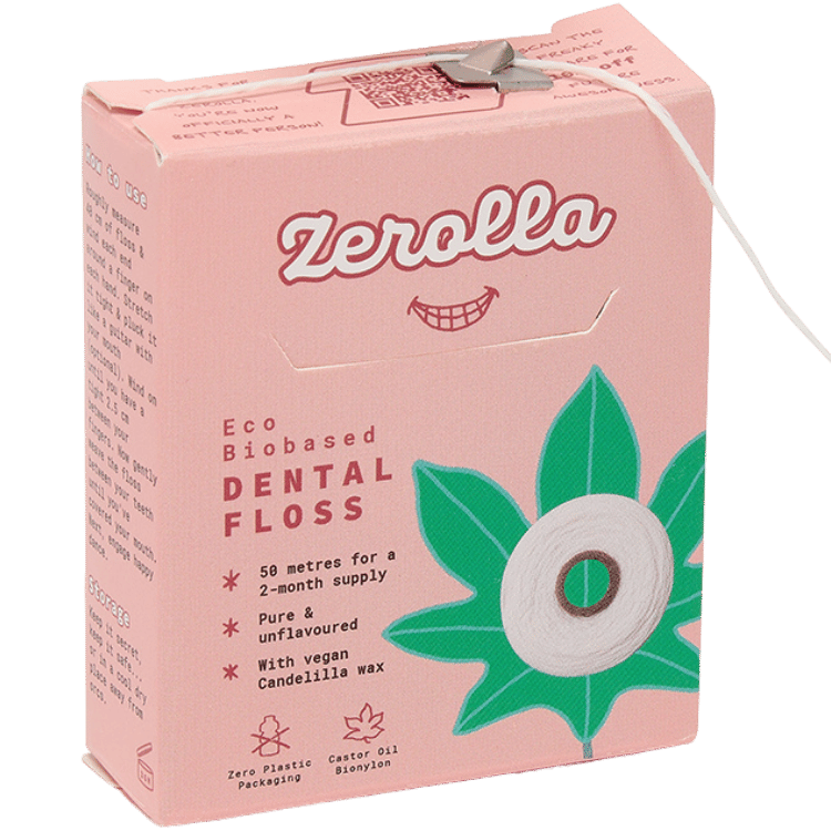 Our vegan & plastic-free floss is great for dental care & bad news for landfills. Cleans all the lovely nooks & crannies in your mouth where bacteria love to party, preventing gum disease, tooth decay & tartar buildup.