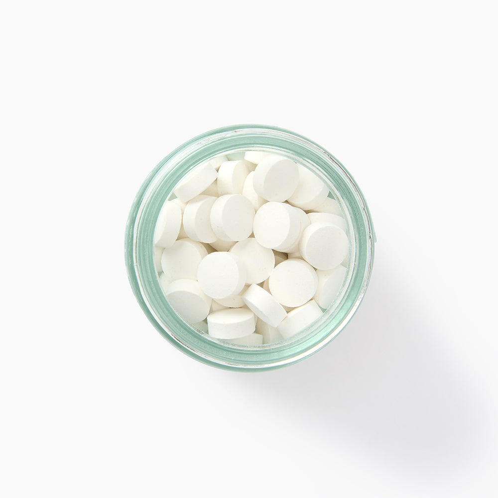 Our Toothpaste Tablets pack all the clean you need into one tiny, travel-easy crunch. With whitening Sodium Bicarbonate to lift surface stains & boosted with Calcium Carbonate & Kaolin Clay to help remove plaque. The alkalising, pH-balancing formula supports a healthier oral microbiome, without SLS, sodium fluoride, or any unnecessary chemicals. With a plastic-free & zero-waste packaging, every 100-tablet jar saves up to 8 toothpaste tubes from landfill each year.